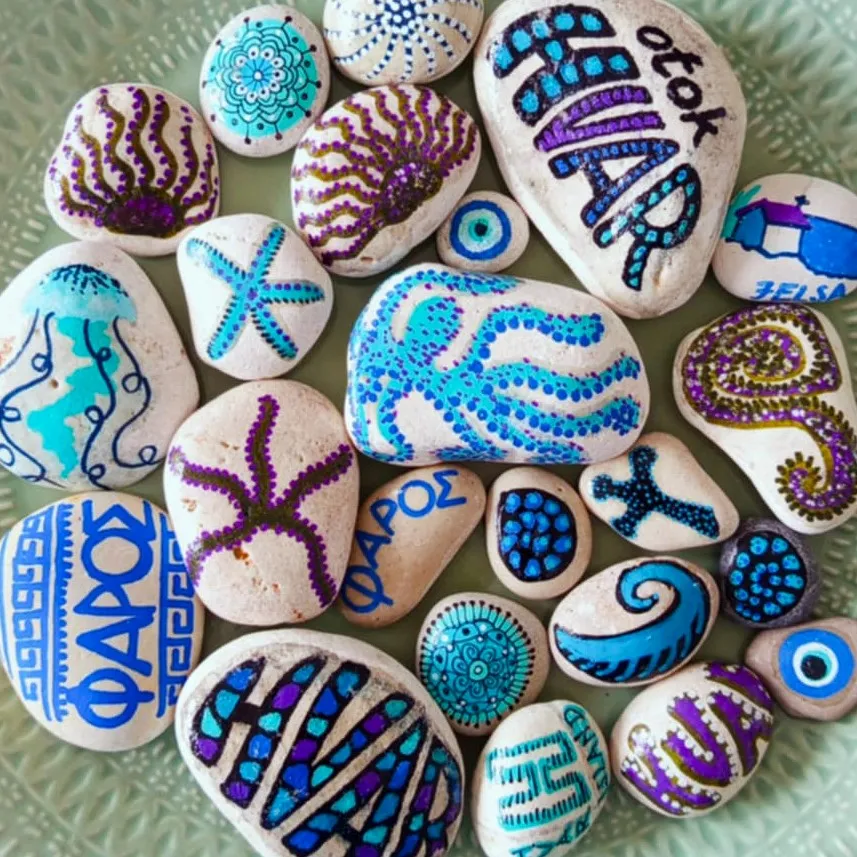 Our handcrafted stone products include painted pebbles and tiles. Each of our stone products is individually hand painted with stone varnish, making it completely waterproof and weatherproof. Place it on the wall of your house or in your garden and remember the beauty of the island for years to come.